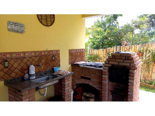 Área gourmet, com forno a lenha, churrasqueira.